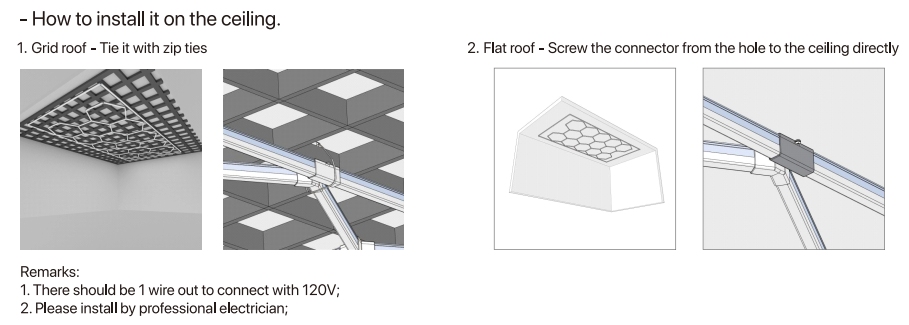Hexagon Led garage lights with accompanying ties, sockets, screws