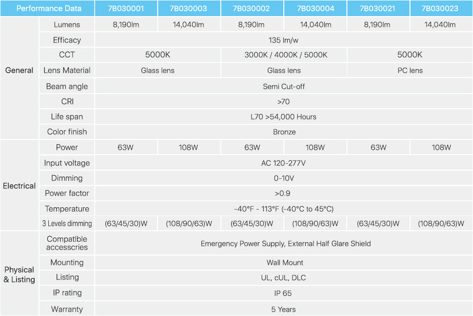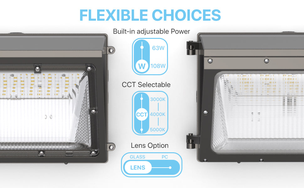 Wall Pack Lights - WPC Series, 8190lumens, Wattage & CCT Selectable, AC120-277V,with Photocell - (63/45/30)W - 8190lm / (5000K/4000K/3000)K / PC Lens is backordered and will ship as soon as it is back in stock.