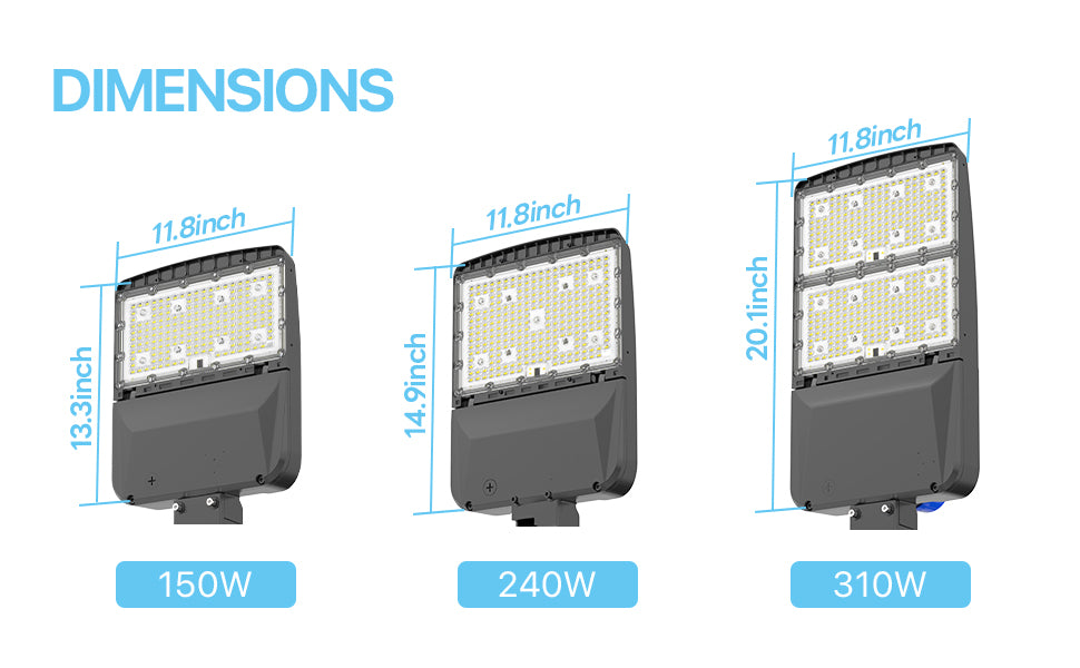 - ☎ Bright & Energy Saving - The XALH Area Light offers a wide range of brightness options from 80W to 310W, providing lumination up to 48,000 lumens. With 150LM/W high light efficacy, this black powerful fixture is well-suited to ensure visibility and safety, and save 80% electric bills at the same time.