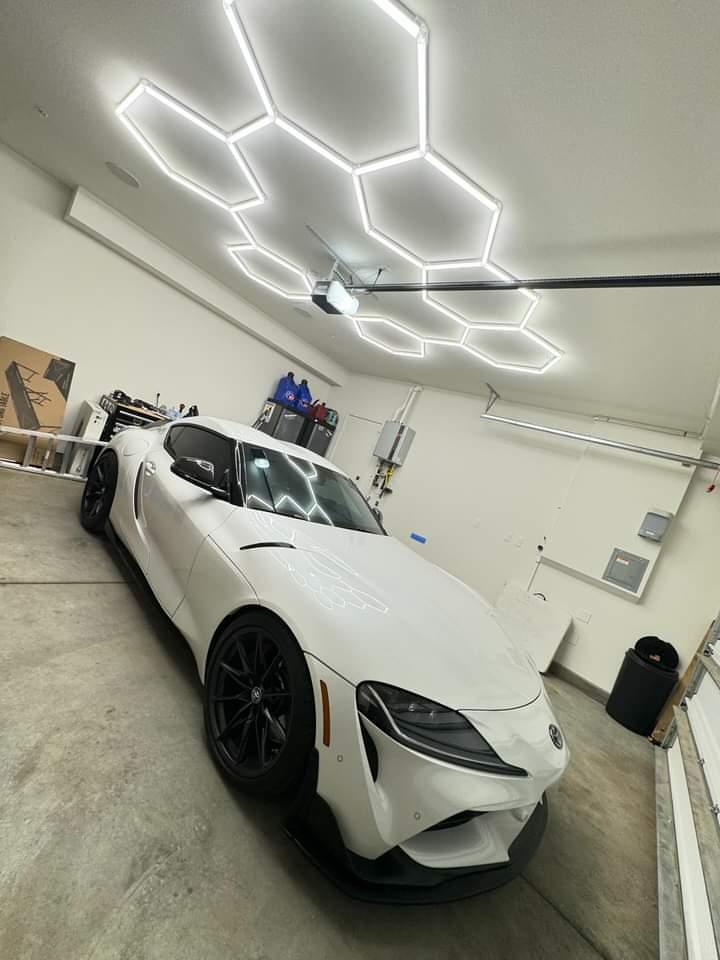 Super BrightThe 5 Grid 168W hexagon garage lights with up to 100 lumens per watt and easy reach 16800 lumens. Can always deliver stable light for garage, workshop and car detailing shop.