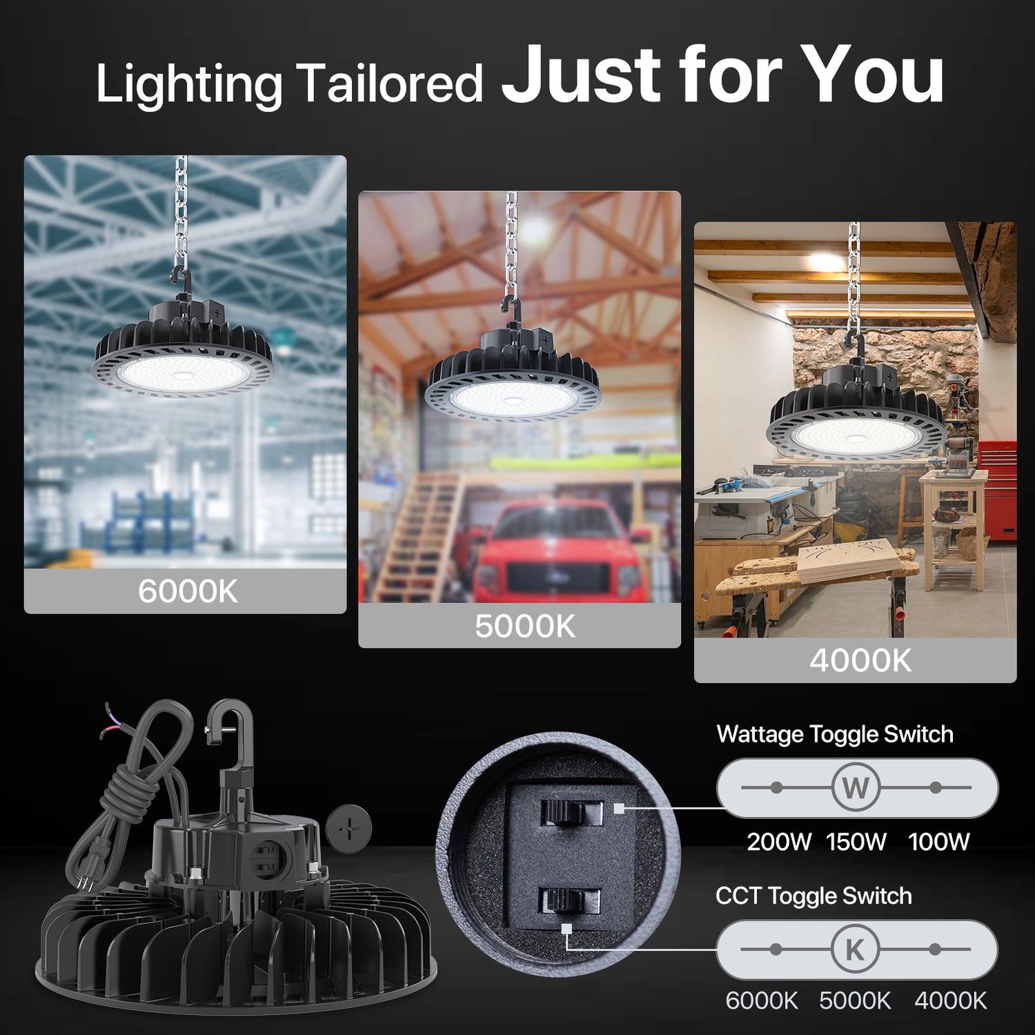 Hyperlite LED High Bay Light - Black Hero Series, 29000lumens, Selectable Wattage&CCT, AC 120-277V - 200W - 29000lm / 6000K/5000K/4000K selectable / 1Pack is backordered and will ship as soon as it is back in stock.