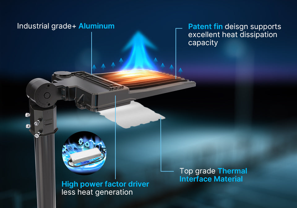 Hyperlite LED Parking Lot Light - Zeus Series, 22500lumens, 5000K, 120-277V, Dusk to Dawn