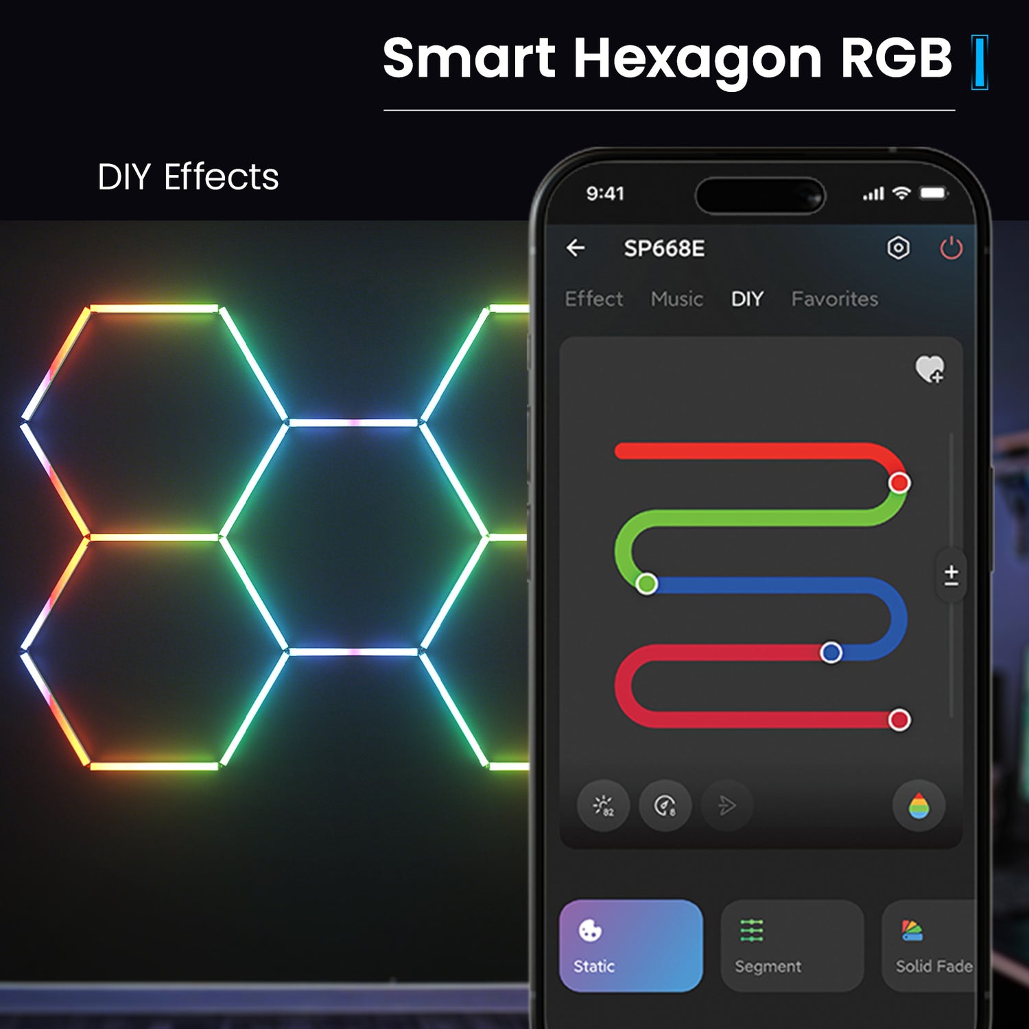 Heads up! The RGB hexagon kit is designed to work as a complete set. Its unique connectors mean it's not made for DIY expansion or mixing with standard parts, but it comes with everything you need for an awesome, ready-to-use setup.