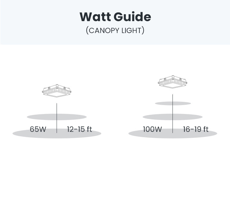 - ✅ IP65 Waterproof & Wide Application: IP65 Grade Waterproof Canopy Lights Suitable for Indoor or Wet Location, Parking Garage, Warehouse, Shop, Entrance Passage, Underground Passage, etc.